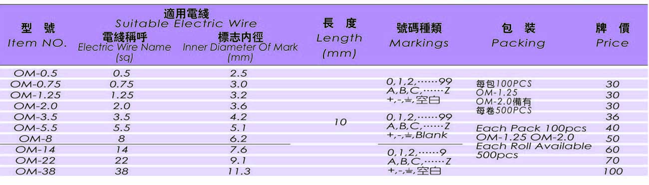 > 配线标志类 > B01 OM型配线标志