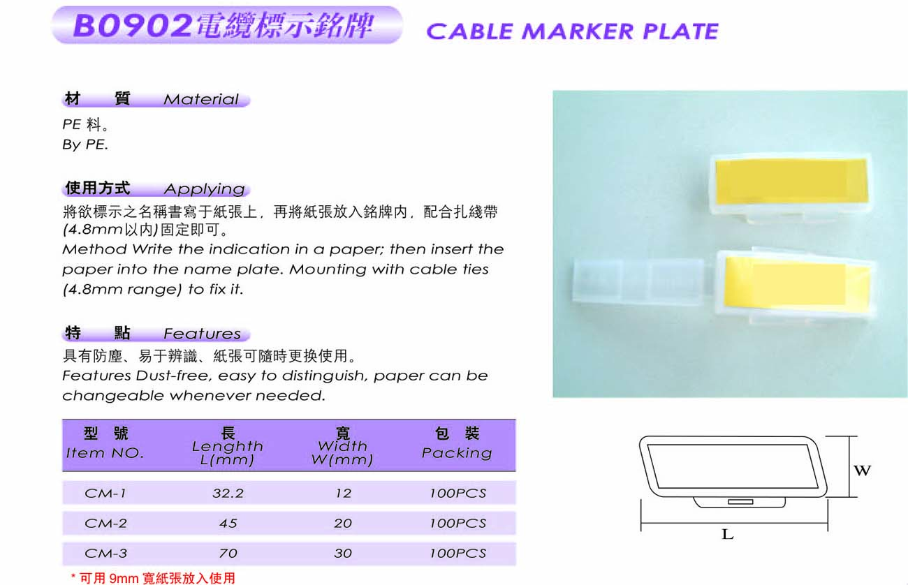 将欲标示之名称书写与纸张上,再将纸张放松铭牌内,配合扎线带(4.8mm以内)固定即可。