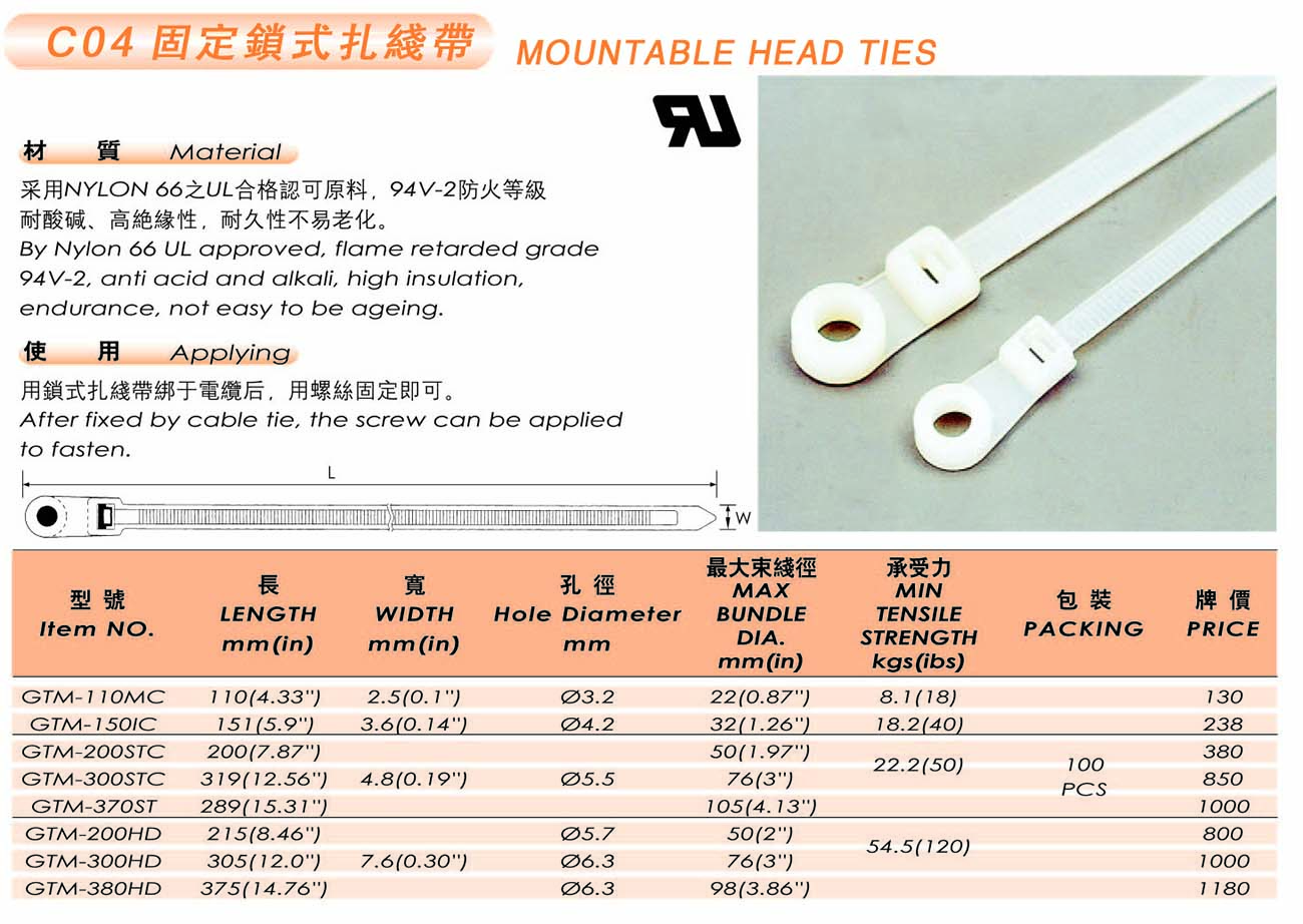 > 扎线带类 > CO4固定锁式扎线带