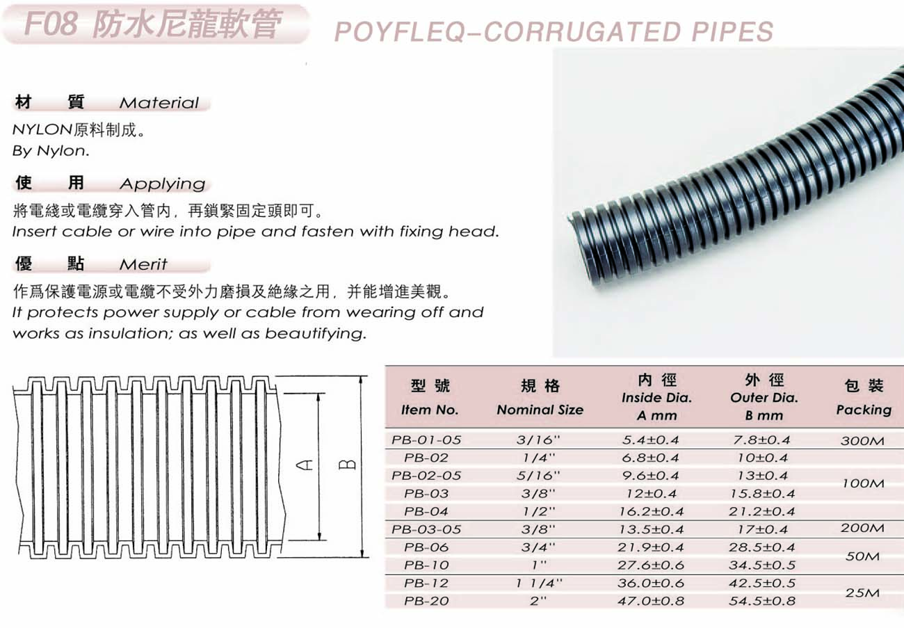 > 浪管和固定头类 > FO8防水尼龙软管