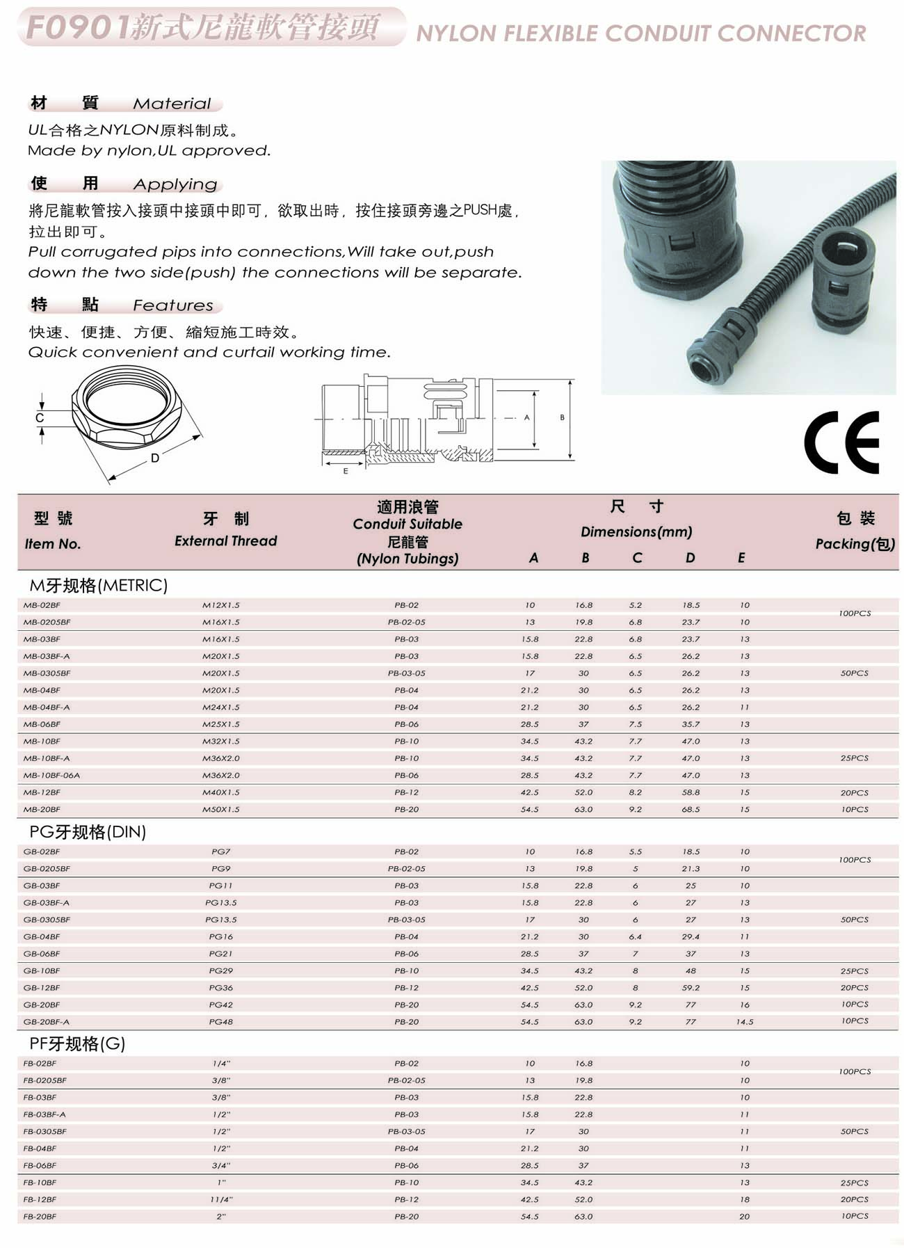 UL合格制NYLON原料制成。