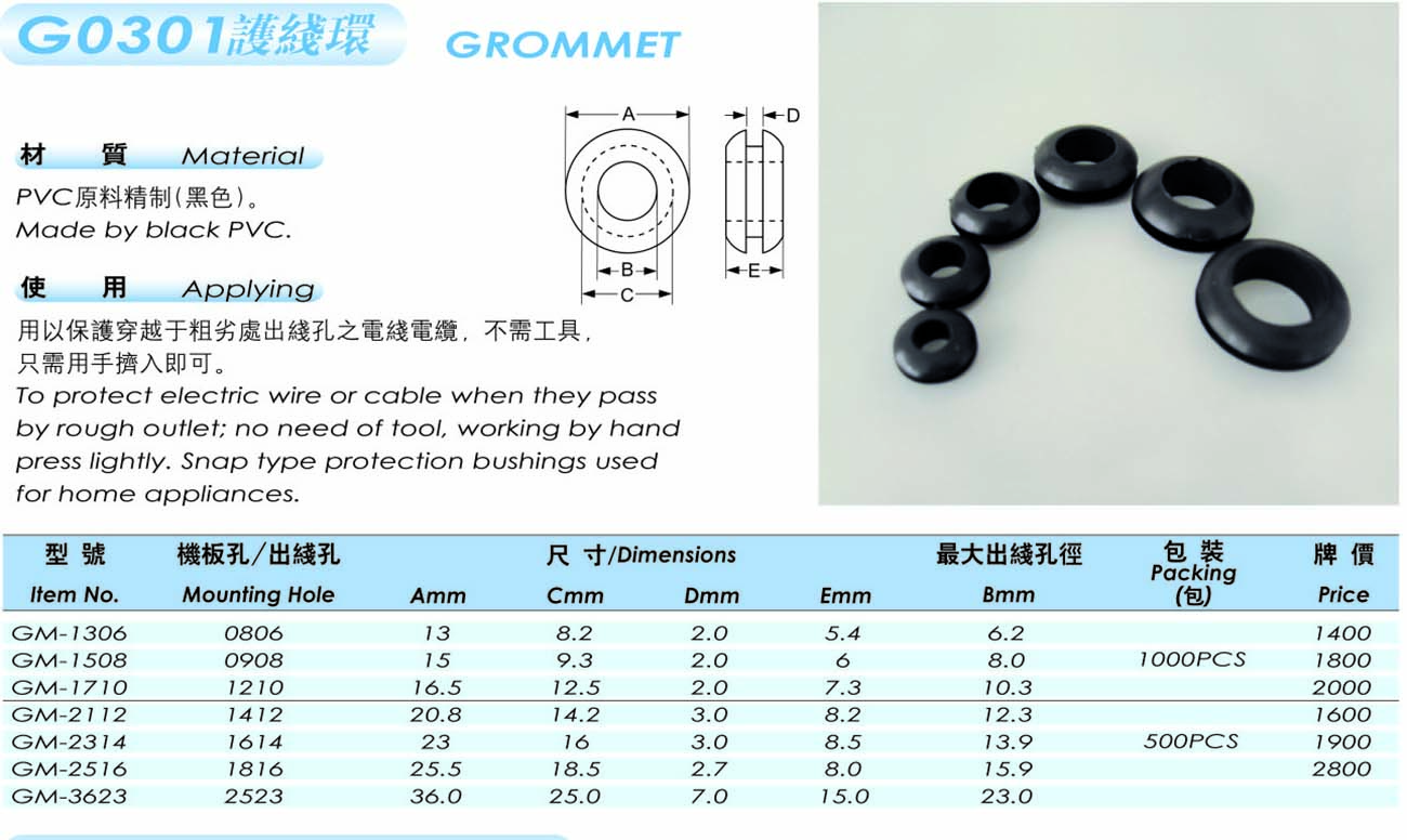 用以保护穿越于粗劣出出线孔之电线电缆,不需工具,只需用手挤入即可。