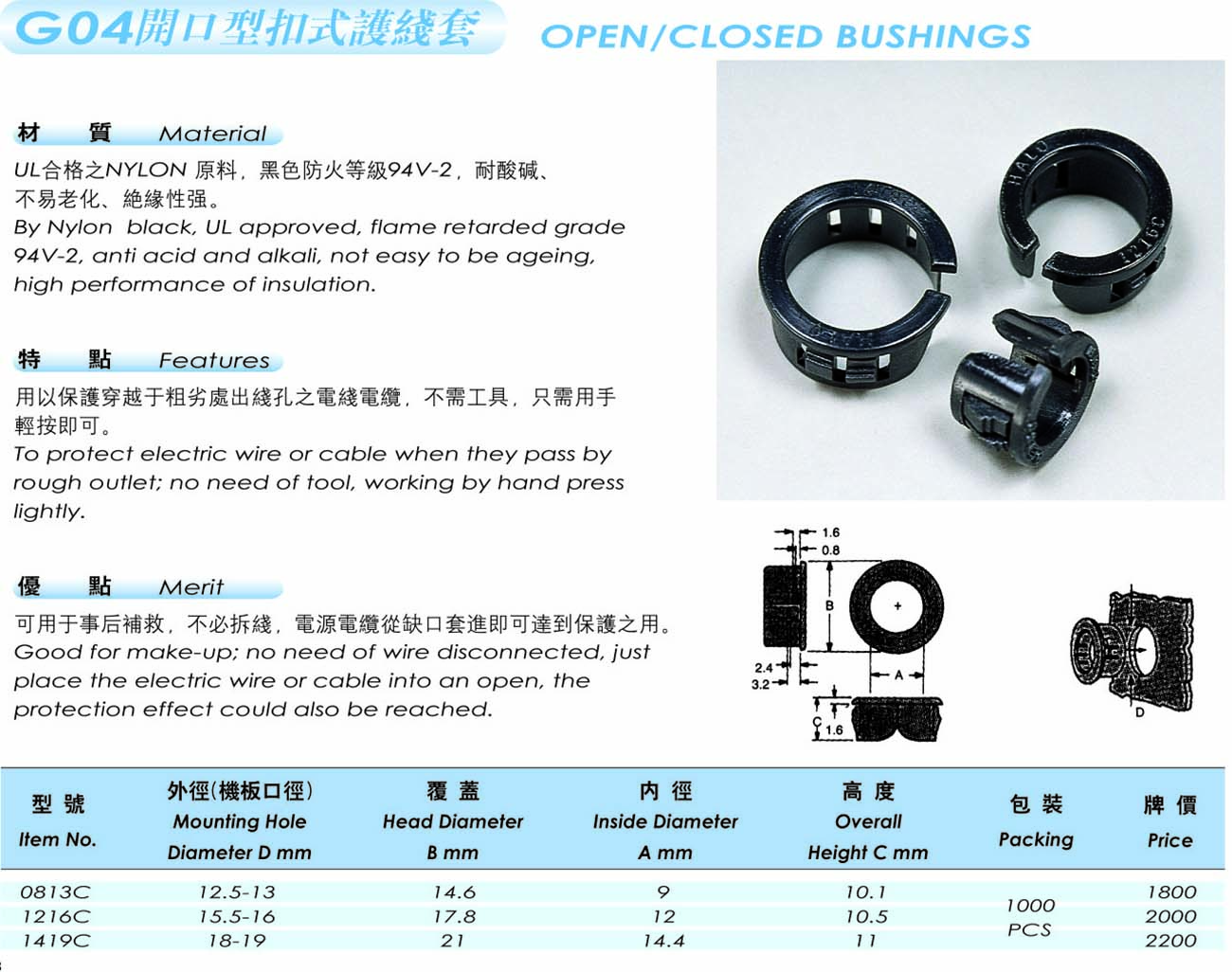 特点:用以保护穿越于粗劣处出线孔之电线电缆,不需工具,只需用手轻按即可。
