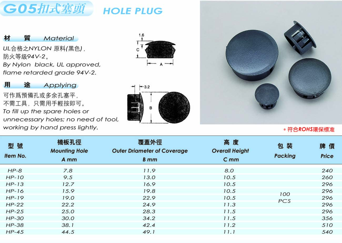 可作为预备孔或多余孔塞平,不需工具,只需用手轻按即可。
