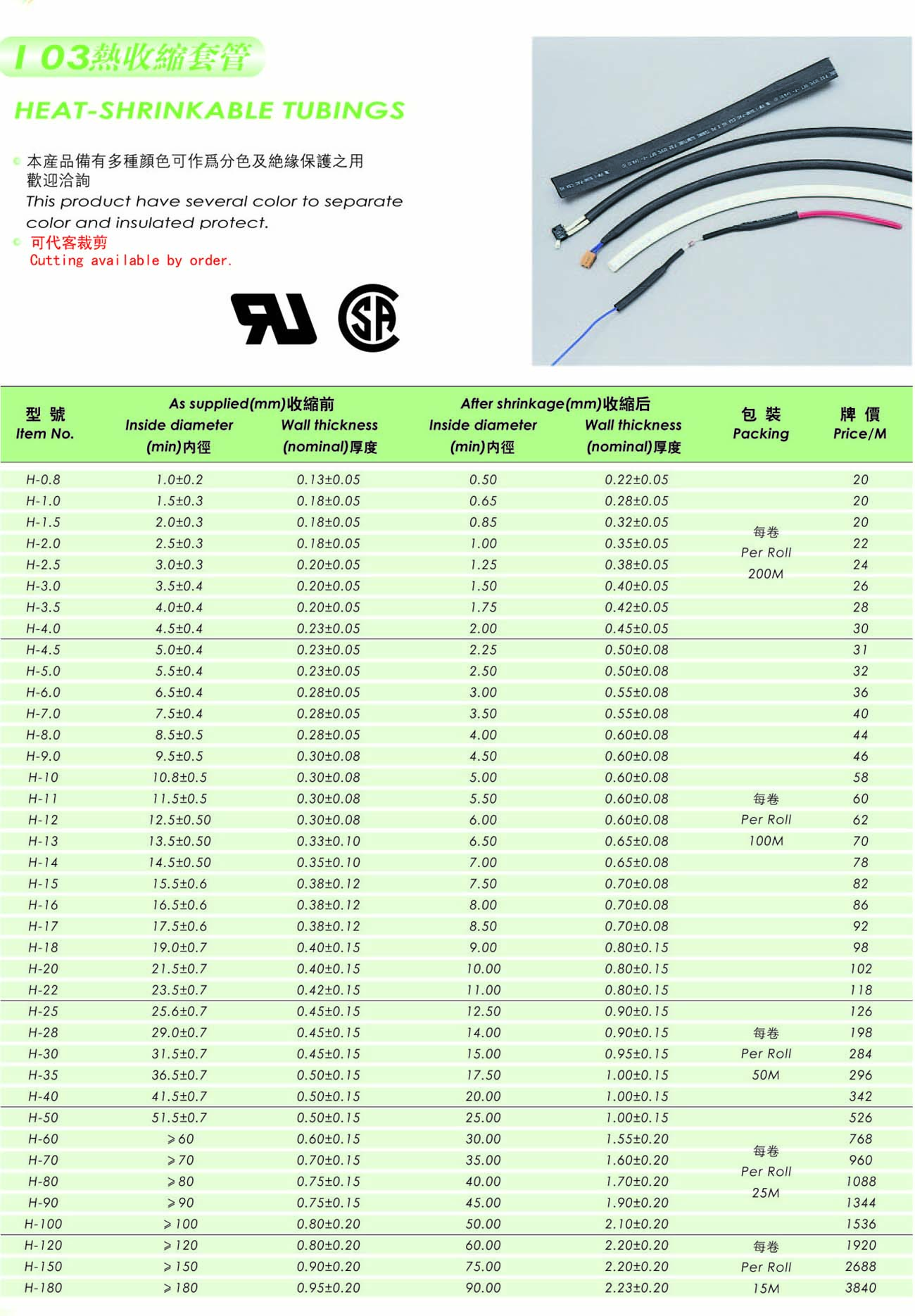 本产品有多种颜色可作为分色及绝缘保护之用欢迎洽询。