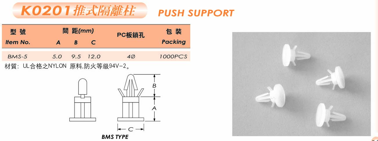 > PC板隔离柱 > KO2O1推式隔离柱