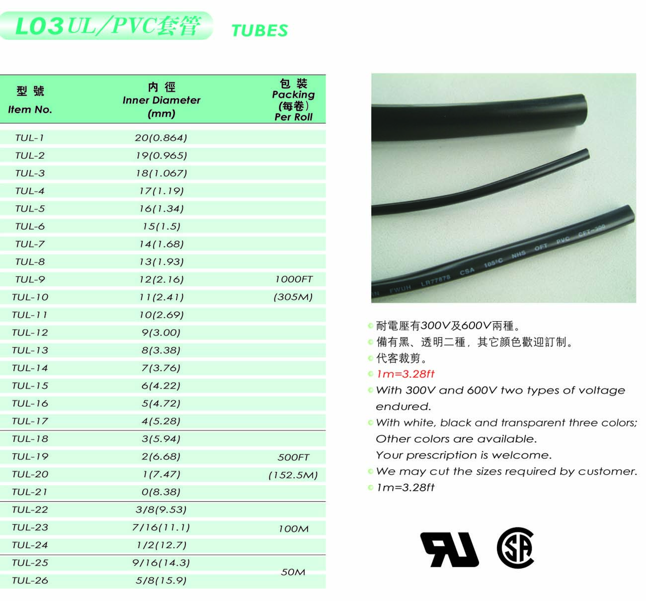 > 耐热物品套管 > LO3 UL/PVC套管